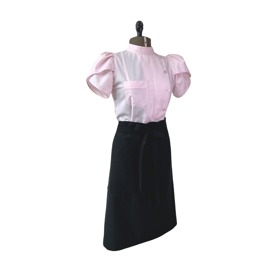 Stand out in this elegant and feminine blouse with a stylish wrap-around bib and high collar. The tulip sleeves add a delicate and unique touch that will allow you to feel comfortable during your culinary activities.