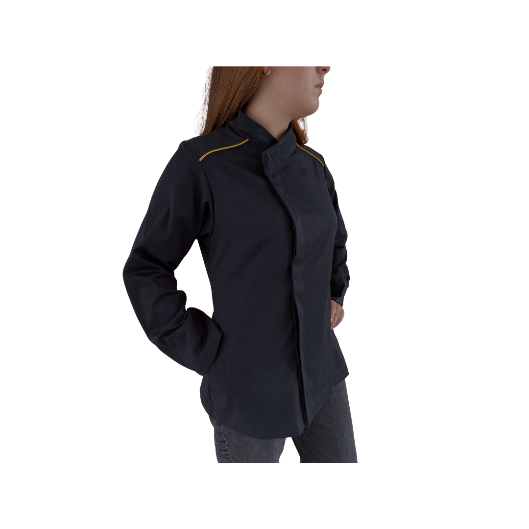 Confeccionada en una gabardina suave y duradera. Perfecta para profesionales que buscan calidad y diseño.