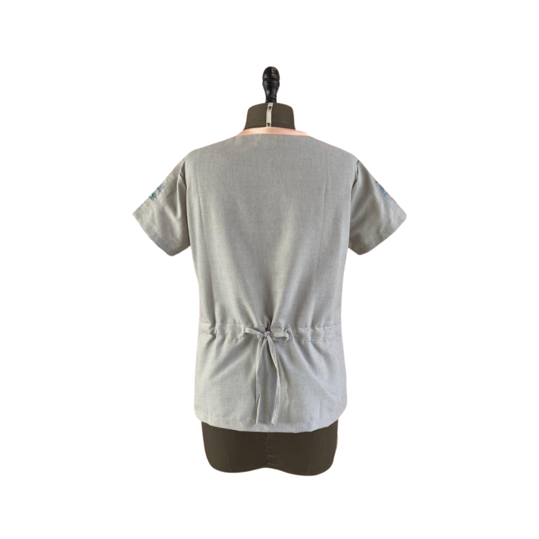 Nuestra filipina Cordelia confeccionada en tela suave, resistente y durable. Cuello en V cruzado. Bolsas laterales y jareta en esplada para ajuste en cintura. Detalle de bies satinado en tono a elegir. Ideal para cualquier clínica o profesional de la salud.