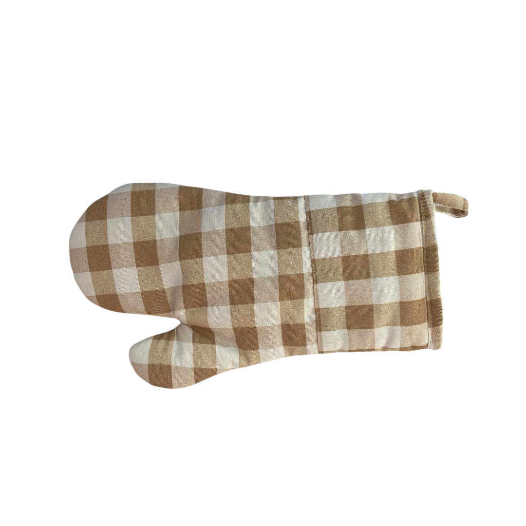 Guante o manopla de cocina de tela loneta española en cuadros blanco con beige.