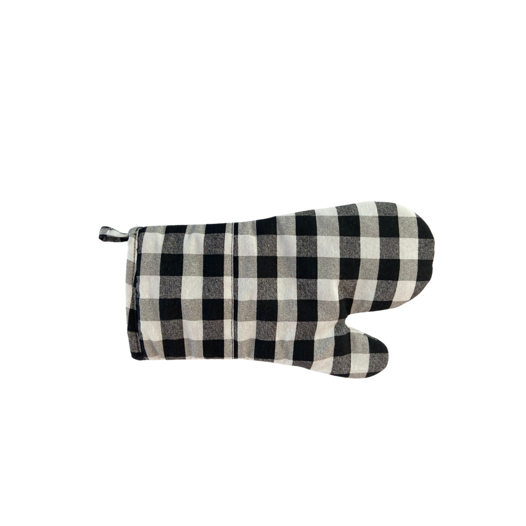 Guante o manopla de cocina de tela loneta española en cuadros blanco con negro.