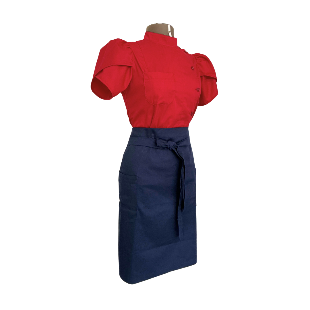 Combinada con mandil Mayra a juego, creando un conjunto armonioso que aporta feminidad y elegancia.